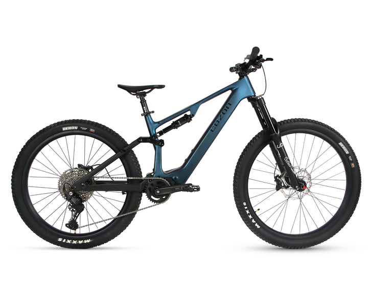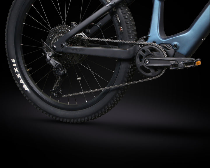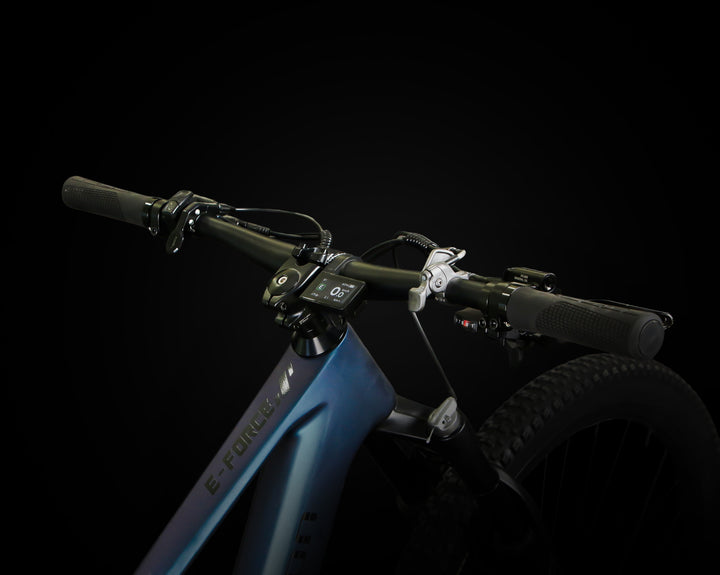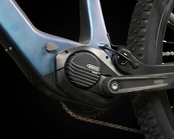 محرك BAFANG M820 متوسط الموقع بقوة 250 واط، مستشعر عزم متطور، شاشة BAFANG DP C244.CAN، نظام تروس Shimano CUES U6000 بـ 11 سرعة مع تقنية LINKGLIDE، إطار من ألياف الكربون، إطارات MAXXIS مقاس 29 إنش.