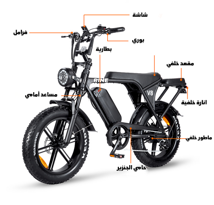 استمتع بتجربة قيادة استثنائية مع دراجة Rine V8 الكهربائية، المصممة لتجمع بين الأداء العالي والراحة القصوى والتصميم العصري.