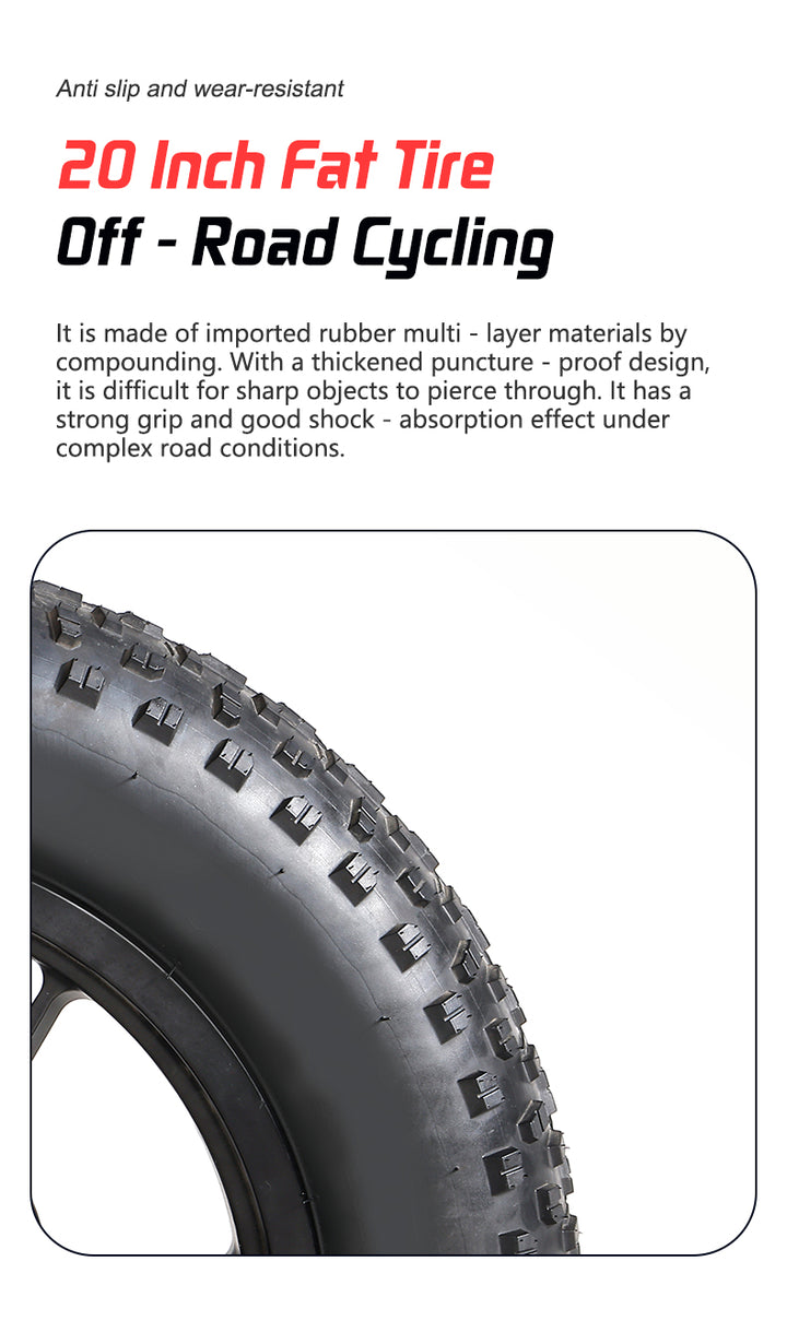 مقاس الإطارات: | 20 × 4.0 بوصة (Fat Tires) |